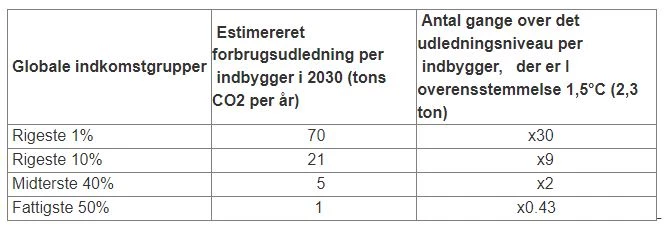 • CO2-aftrykket fra verdens fattigste halvdel ligger fortsat inden for målet om 1,5°C-stigning.